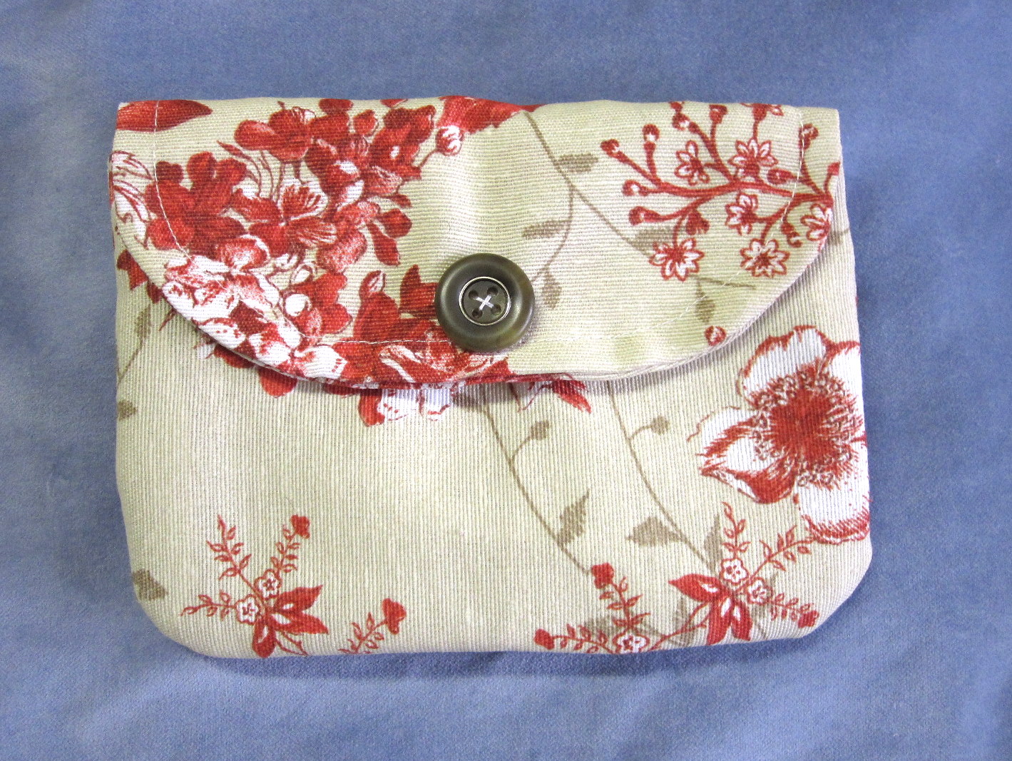 Mini clutch em tecido de algodão com flores em tons de vermelho