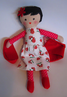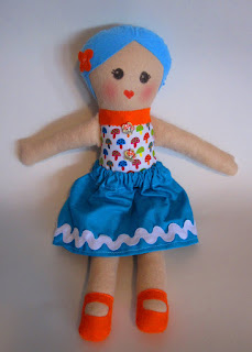 Boneca em feltro e tecido com saia que se pode retirar.