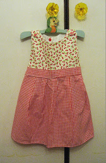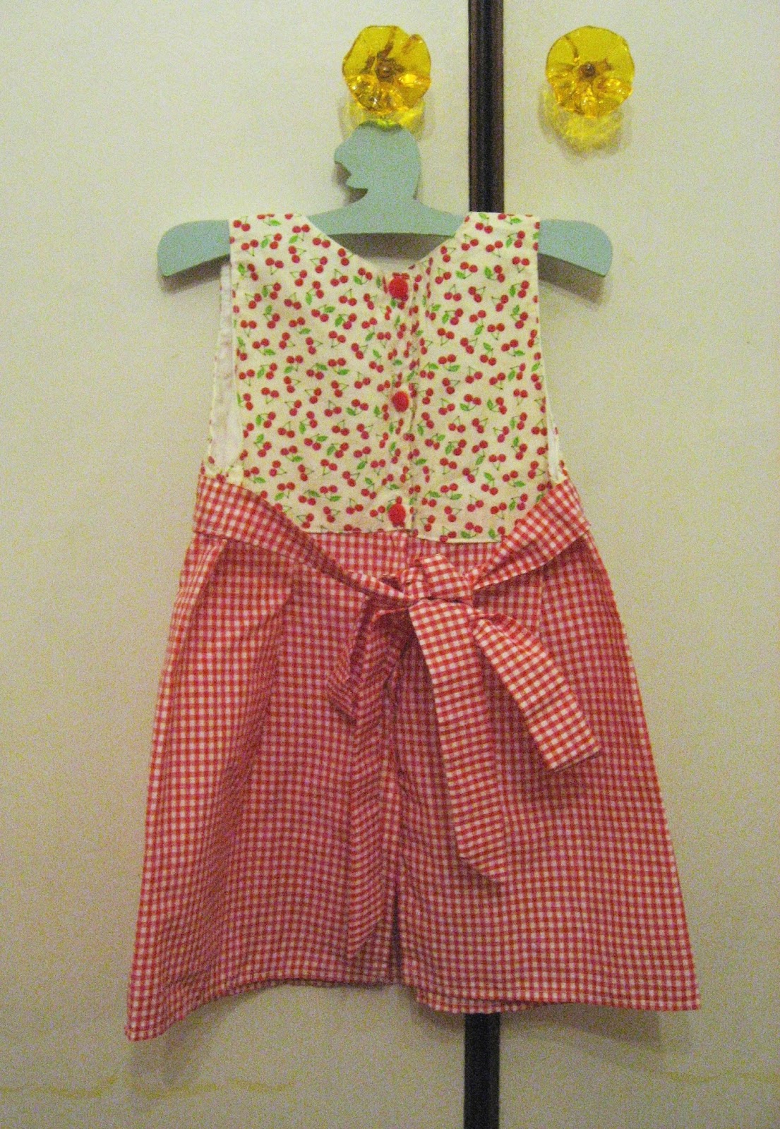 O vestido com a zona superior em tecido de algodão estampado com cerejas,