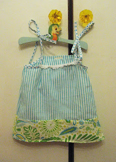 O top conjugando as riscas e o tecido de flores, em algodão.